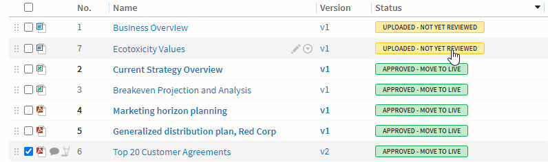 You can establish your own workflows using content statuses and tags to ensure that no documents are missed to keep the deal flow going.