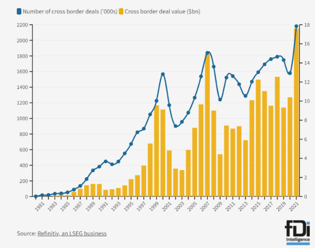 3 Cross border M&A reaches all-time high of $2.1tn in 2021.