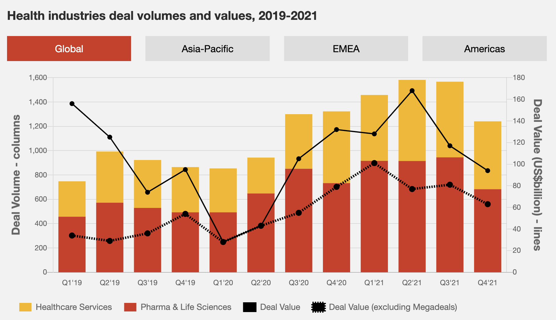 “M&A is holding up remarkably well in 2022 as health industries investors seem largely undeterred by the economic uncertainty and other headwinds, remaining focused on acquiring innovative companies that can fuel growth via new technologies and digital capabilities,” reported Christian Moldt, global health industries leader and partner at PwC Germany.